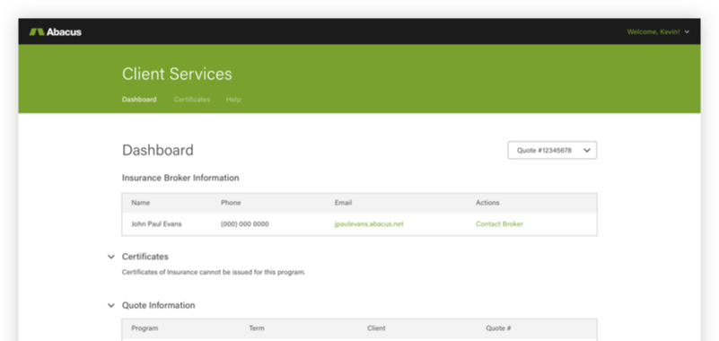 The Abacus Client Service Center allows you to easily add multiple users to your account. And if you have multiple quotes or policies, they can all be linked together.